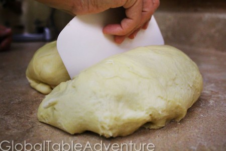 Let it rise for 1.5 hours. Be sure to cover the dough, so it won’t dry out. I left mine in the mixing bowl and draped a towel over it.