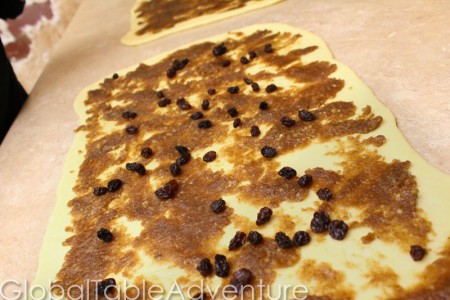 - Spread the filling and if you'd like, sprinkle with raisins.