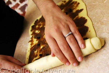 It’s all in the wrist. The secret to making good Povatica, that is. This famous Croatian Holiday Nut Roll gives its maker a workout. You will be rolling, and pulling, and stretching the dough until it is thin, thin, thin Unlike cinnamon buns, which ooze fluffy bready goodness as much as anything else, Povatica is all about showing off the filling, framed by delicate layers of bread.
