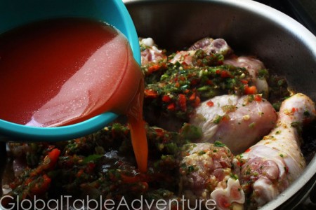 4. Add in the sofrito-lemon marinade and pour the broth mixture on top.