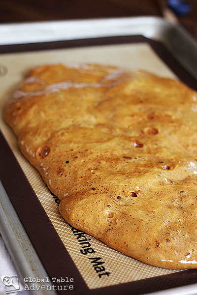 P.S. You don’t want it to overflow. If it gets close, pour gently and with no hesitation onto your lined baking sheet (I used silpat).
