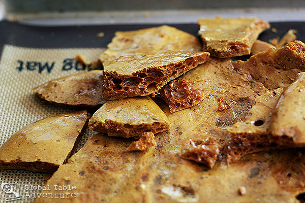 Traditional recipes use golden syrup, but since I don’t have any of that, I used honey which gave the hokey pokey the most incredible,  buzz-worthy flavor and just about turned me into a honey bee. Friends at my writer’s group suggested it tastes somewhat like peanut brittle without the peanut. All the tiny air holes make it crunch like a wafer, though.