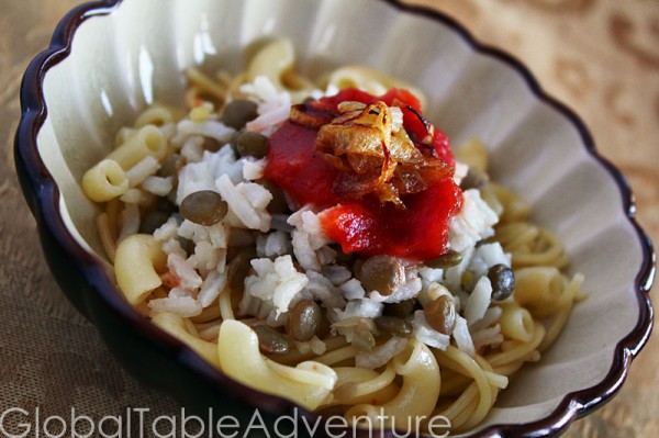 NOTE: If it seems a bit overwhelming, think about breaking this recipe up over a few days (make the pasta and sauce one day, the rice and lentils anther day…) just keep everything refrigerated until you’re ready to assemble.