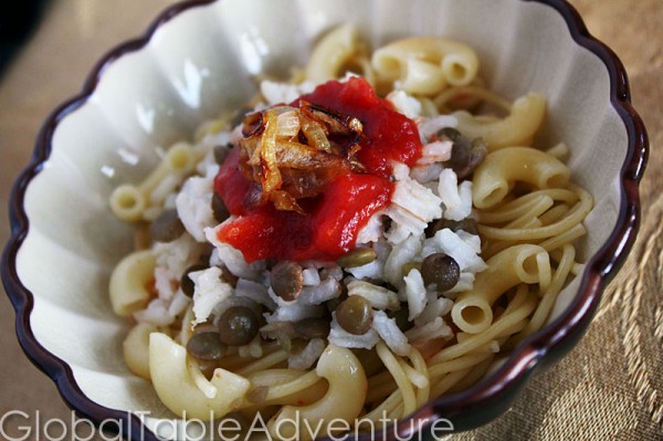 P.S. Here’s what it looks like in a bowl, if you are organized enough to serve Kushary in individual bowls…