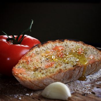 - Bring to table. Give everyone a garlic clove to rub onto their toasted bread. Then rub tomato halves on toast.