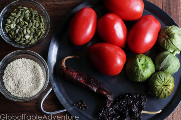 Our recipe is adapted from our friends over at Uncornered Market (where you can watch a great video of Pepian preparation in Guatemala). They used guaque and pasa chilis; we could not obtain these so we substituted the closest we could find. The result was a completely mild pepian. Enjoy!