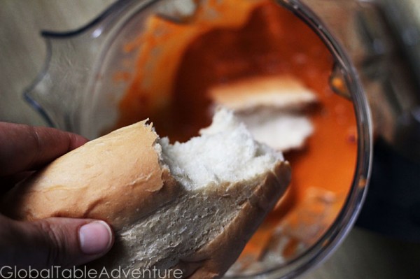 Once the sauce is fairly smooth, add in the bread and process again.