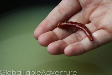 Then, the hot pepper. I wish I had cut it up to make things spicier