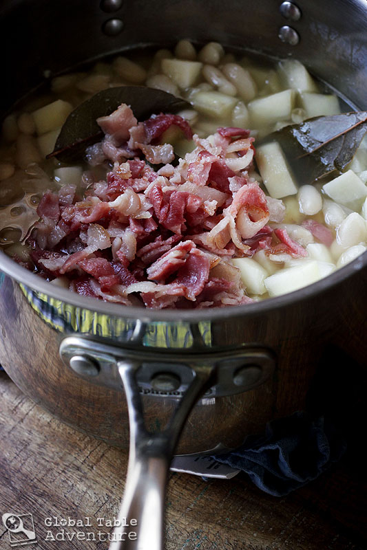 Add the potatoes and bacon to the pot of simmering beans. Let cook until all ingredients are cooked through and your home smells like wonderful.