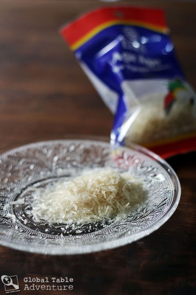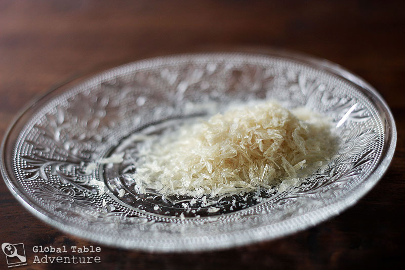 As an added bonus, Coconut Jelly sets up at room temperature, since it’s traditionally thickened with agar agar instead of gelatin. This makes the dessert a great option not only for street food vendors, but parties & potlucks where you don’t want to mess with refrigeration. You can find this vegan seaweed thickener in the Asian aisle of your supermarket. It looks like tiny, delicate, ever-so-sparkly crystals.
