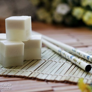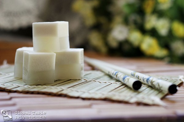 This is the perfect treat for such indecision; you’ll find it throughout Myanmar. Made with little more than coconut milk, water, sugar, and agar agar, the jello-like dessert sets up firmly, separating into two layers. If you don’t disturb the mixture while it’s setting, the layers will be 50/50 clear/opaque, which is very cute. If, however, you spend 15 minutes furiously whisking the mixture in an an attempt to capture photos of steam.. well… it won’t separate quite as well.
