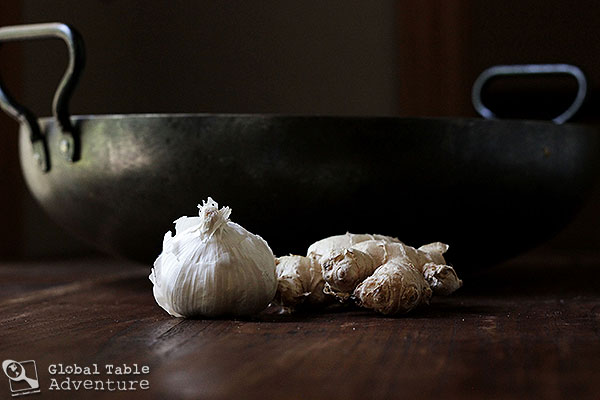 Next, cook the garlic, ginger, and onion in oil until softened.