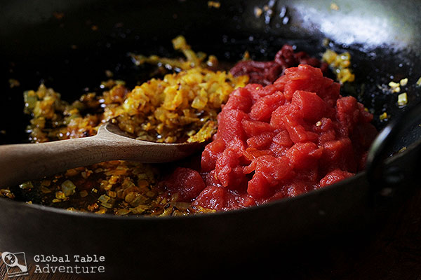 1. Cook the garlic, ginger, and onion in oil until softened.