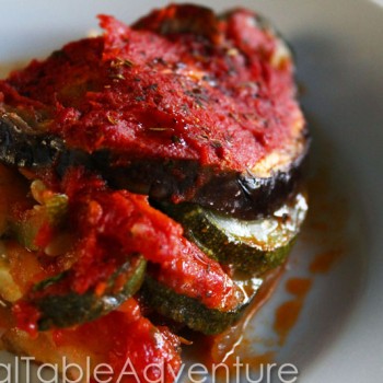 This simple layered casserole is vegan, rich, and addictive. The vegetables cook down into a soft casserole, but can be uncovered half way through cooking to reduce the effects of steaming.