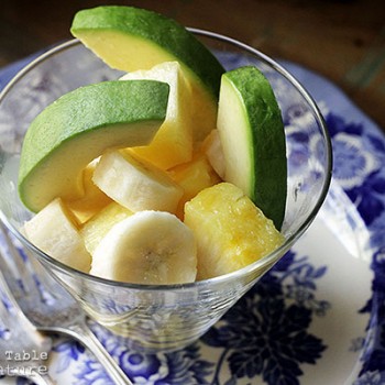 NOTE: There’s no right or wrong way to make a fruit salad, but if the weather is chilly where you live, you might be best off sticking to bananas. Unlike more temperamental mangoes and papayas, bananas seem to be good all year round.