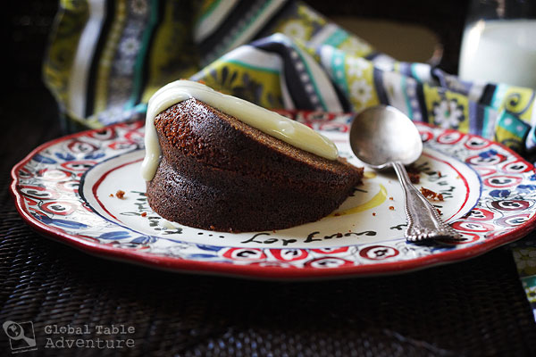 We ate this treat one early morning, as part of a Samoan Saturday breakfast which included our Koko Rice (a.k.a. chocolate and coconut rice pudding). I was so bleary-eyed from my too-early wake up (thanks to my ever-eager Miss Ava) that I completely forgot to serve it with the traditional accompaniment – vanilla custard – and instead passed around some softened butter. It was only days later that I remembered what I’d read, cut myself a new slice, and ladled some still warm sauce over the top.