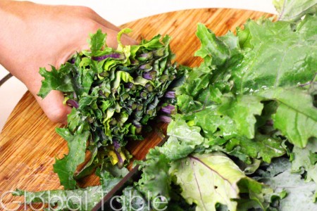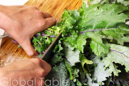 1. Rinse and trim the kale. Kale is full of good-for-you vitamins and minerals so eat it up!