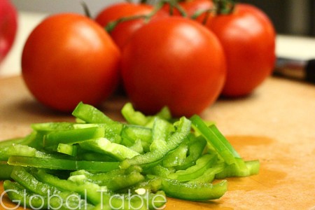 - 1 green bell pepper , thinly sliced