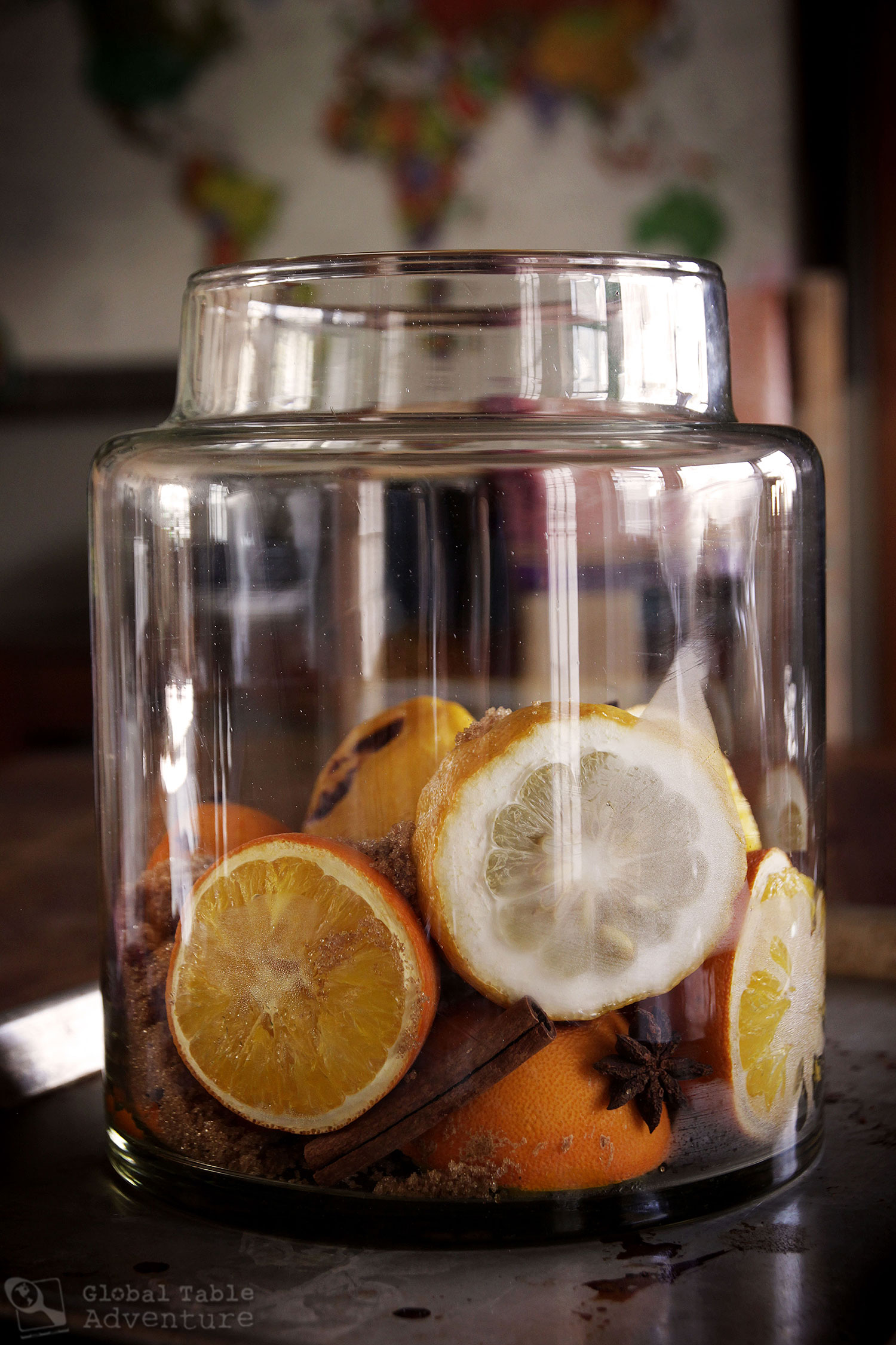Finding Seville oranges can be hard – there were none in my local market. Many folks will substitute a few sweet oranges with a lemon or grapefruit in the mix to give a bitter note. For this adaptation, I took inspiration from my local market and subbed in an Etrog (also known as Citron). The gnarly, pithy, acidic fruit is virtually inedible unless candied. One Etrog adds the ideal amount of bitters to balance out the port, sugar and sweeter oranges. Use one if you can. A grapefruit would be the next best thing. You could also just use a healthy dose of bottled bitters, but where’s the fun in that?