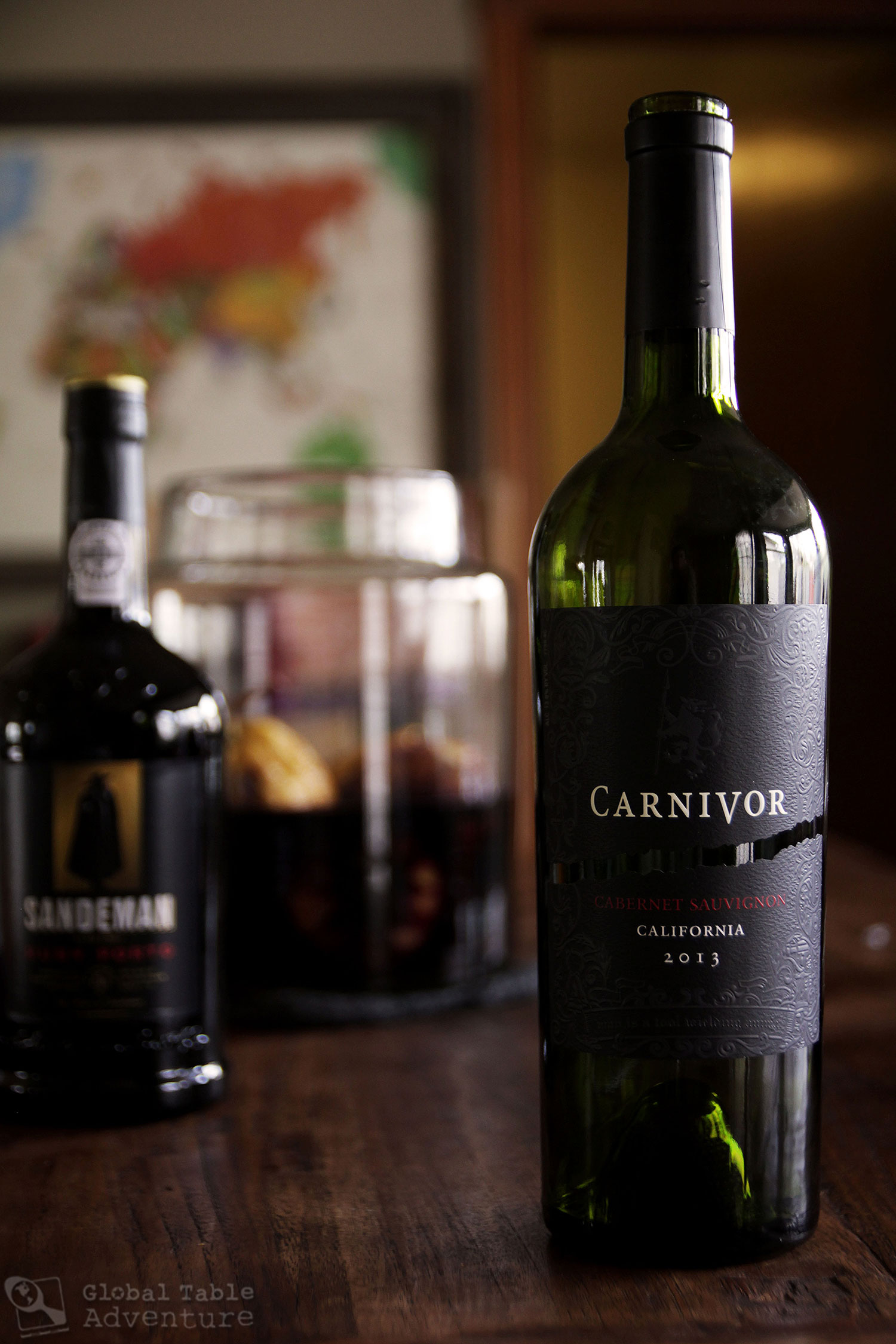 Pour on a bottle of red wine. I used a Cabernet Sauvignon because it balances out the sweet port well, but any good red wine will do.