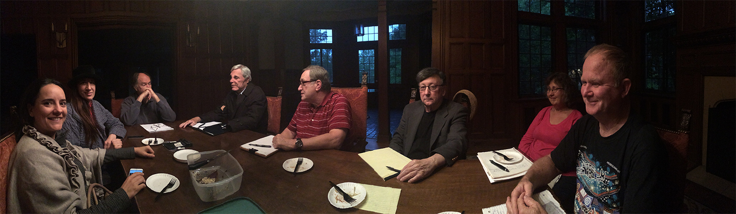 Note: This old photo is missing several members (and we plum forgot to take one at the holiday party). Also: I am fascinated by the effect of using “panorama mode” on my phone. One guy lost his hand and has had his face twisted… but at least it’ll give you a sense of the group.