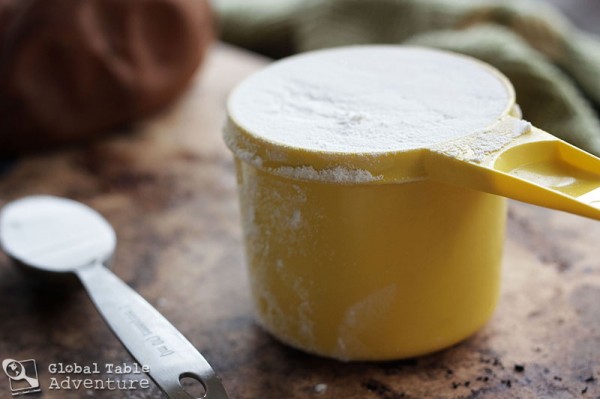 Next comes the snowfall: 1 1/3 cups flour and 2 tsp baking powder.