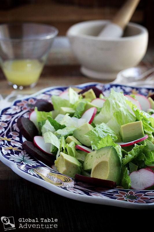 I also found a fun avocado and radish salad topped with a squeeze of lemon juice, fresh grated ginger, and crushed peanuts from The World Cookbook for Students.