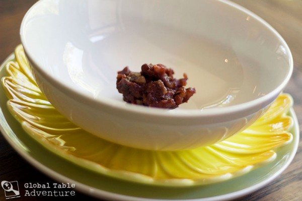 The unusual thing about this soup is not how sweet it is, or even the fact that there’s rice balls in it (that’s not much different than a dumpling) – it’s that there’s a scoop of sweet red beans lurking at the bottom of the bowl, waiting for the unsuspecting diner to slurp and nibble and glump.