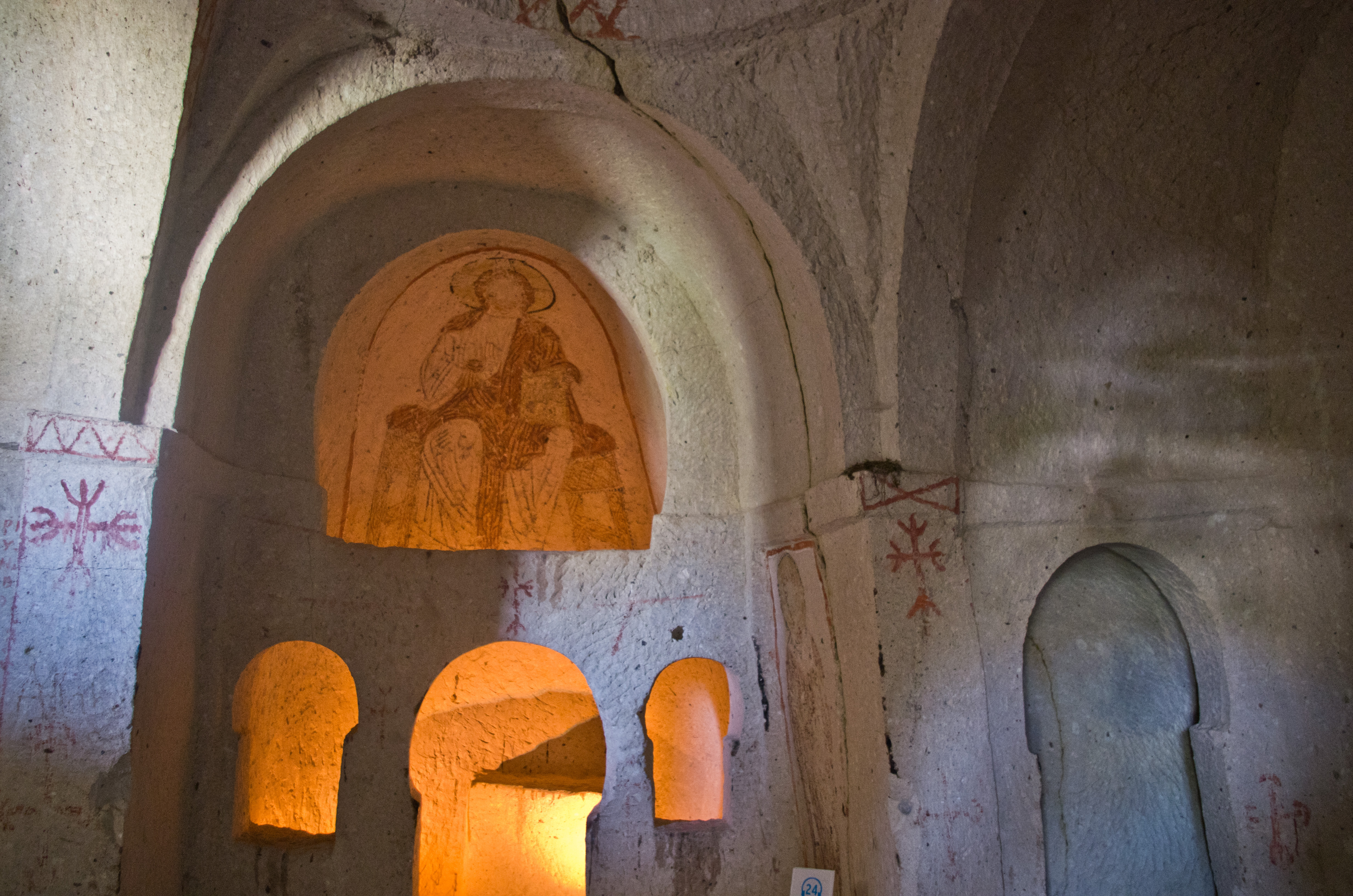 This not to say humans never set chisel to chimney; over the last millennia humans carved into the fairy chimneys to create secure homes and places to worship. These weren’t basic dugouts – many of the cave dwellings are connected with a network of tunnels and vent shafts, and decorated with mosaic floors and frescoes. The underground city at Derinkuyu, for example, is large enough to hold 20,000 people spread over seven interconnected levels, while the underground city at Kaymakli has nearly 100 tunnels.