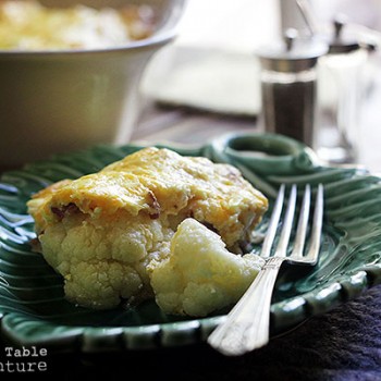 Pour over the top of the cauliflower. Bake at 375 for about 25 minutes, or until bubbling and the edges begin to brown.