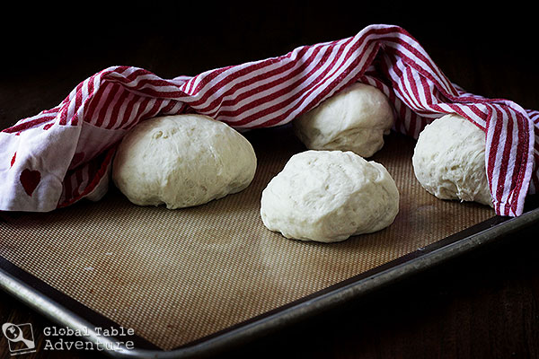 Let rise for an hour, then punch down and divide into four pieces. Shape into balls.