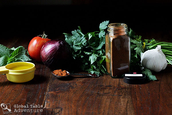 The version we made today includes lamb, olive oil, tomatoes, garlic, tomato paste, paprika, mint and parsley. There’s even a gated onion to provide a sweet background note.