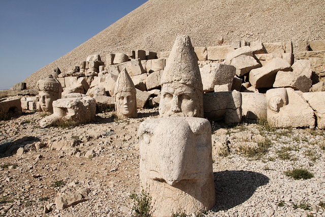 Sculpted heads at the ruins of  the temple erected by King Antiochus of Commagene. Photo by Klearchos Santorini.