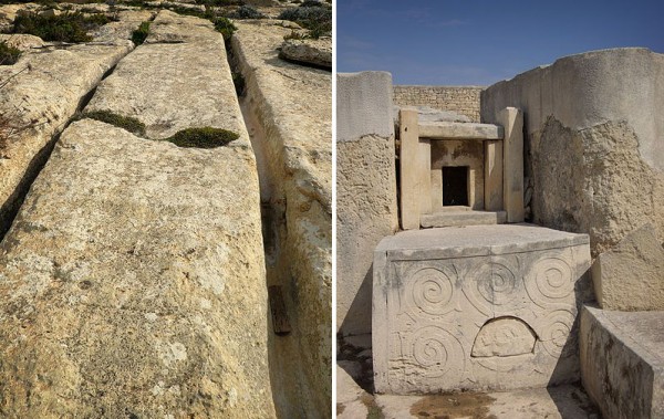 Cart Ruts. Malta, Tarxien temples, altar. This is a copy, the original is in the National Museum of Archaeologie in Valetta (Photo by Berthold Werner).