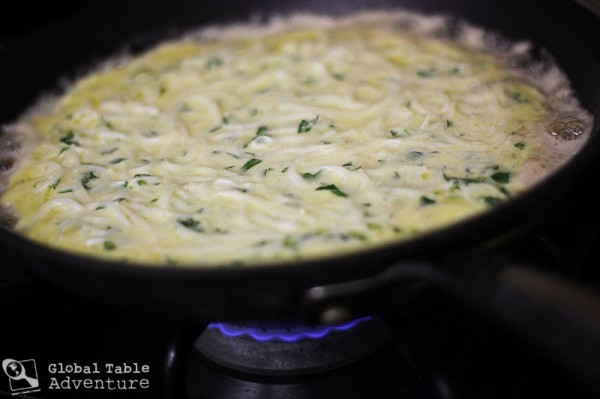 When you cut into the omelet, you’ll see a lovely cross-section of noodles… little happy speckles and spots.