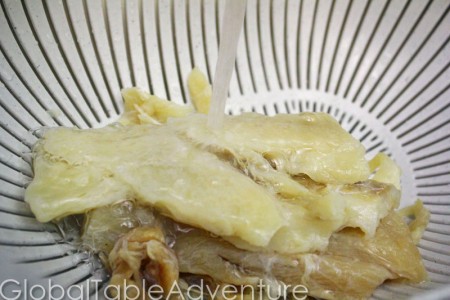 After a little while, the pieces will begin to separate. Keep rinsing and working the fillets apart with your hands.