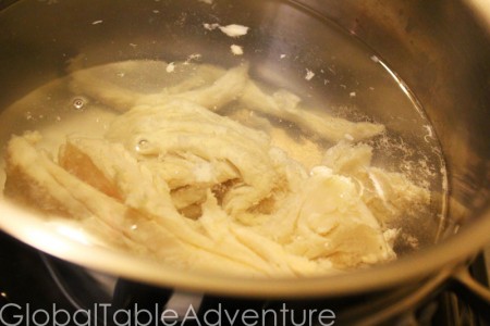 First, gather the salt cod. Salt cod is literally fish packed in salt so that it won’t spoil.