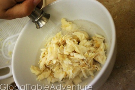 - Drain and place in a bowl with salt cod.