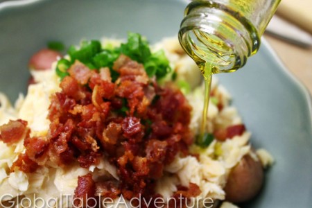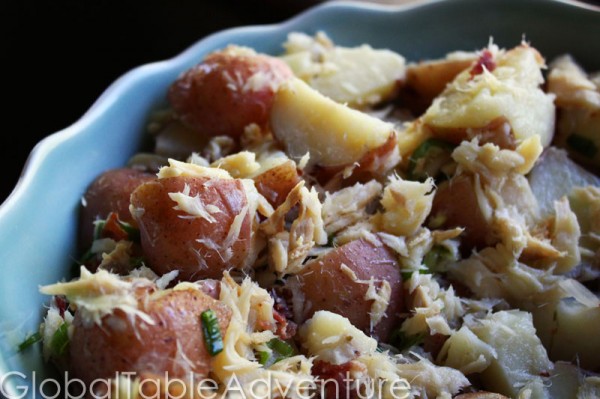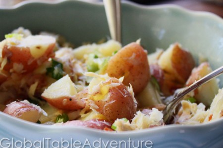 This warm salad benefits from the resourcefulness of Croatians who still enjoy preserved fish with salt. Mixed with creamy red potatoes, a bit of bacon, and green onion – this salad makes a great side dish for any eastern European meal.