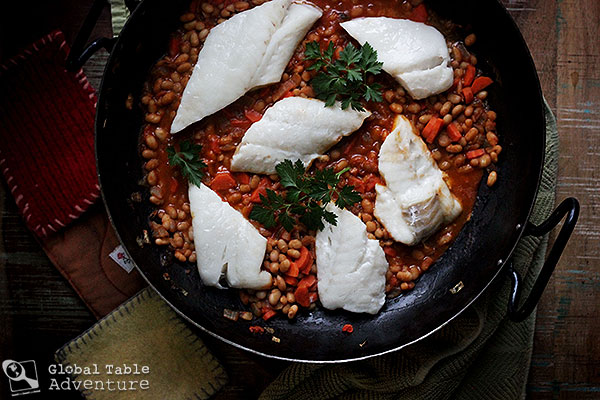 One of our readers, Annabelle, suggested we try today’s Cod Fish Feijoada. This filling, yet healthy Portuguese stew made it’s way to the islands of São Tomé and Príncipe during colonization. Things have evolved quite a bit since then. While most Feijoada’s involve black beans (even as far away as the one we made for Brazil), the islanders favor this white bean version and make it with readily available fish (and sometimes pork).