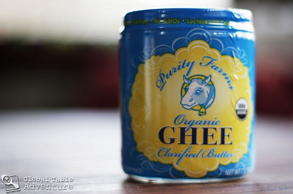 First, let’s talk briefly about ghee. Ghee is butter that’s been cooked on the stove until the oily-looking bits separate from the milk solids. The solids are then skimmed off and, voila, ghee!