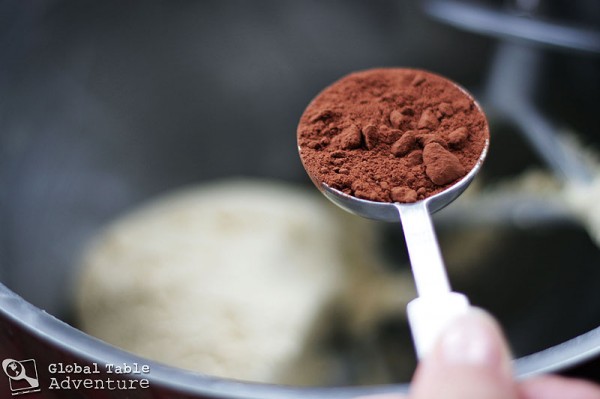 - Remove half the dough for the plain cookies and add a happy sprinkling of cocoa to the remaining half.