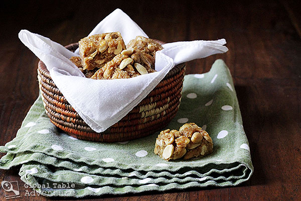 On the simmering streets of Uganda, you can walk up to a street vendor and satisfy your sweet tooth with a big bite of Kashata. Loosely speaking, Kashata is East African brittle. It’s most popular in Uganda and Tanzania. It’s hard, sweet, and all kinds of delicious. I’ve seen Kashata shaped as cubes, balls, and diamonds. Some are flat, some are thick. Just like people, the shape doesn’t matter; it’s all about what’s on the inside. The most glorious Kashata are a blend of peanuts, shredded coconut, and either cinnamon or cardamom. You can also find Kashata made from all coconut or all peanuts. Moreover, sometimes you simply dump in whatever nuts you have on hand. Easy. Makes enough to share. 1-2 dozen (depending on how thin you spread the mixture) Ingredients: 2 cups sugar 1 1/2 – 2 cups peanuts 1 1/2 – 2 cups dried coconut (unsweet) 3/4 tsp ground cardamom (or cinnamon) pinch salt oil, for greasing Method: Let’s go to Uganda, where electricity is optional… because, truth be told, this entire …