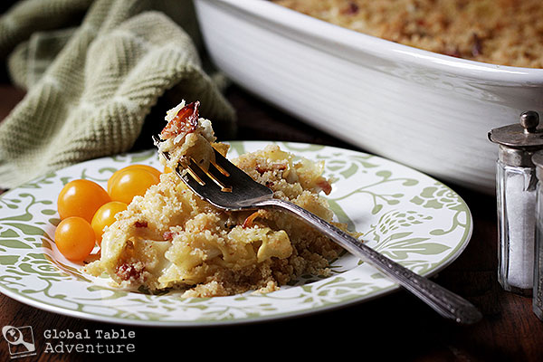 Wouldn’t it be amazing if bacon could cure every ailment. In the Ukraine, I bet it does. Broken heart? Bacon. Spilled beet juice on your favorite sundress? Bacon. Thursday afternoon existential crisis? Bacon. I’m thinking it’s worth a try. That’s where this pasta bake comes in. “Lokshyna” are Ukrainian noodles, and today we’ve dressed them up with plenty of sizzling bacon, creamy cottage cheese, and a couple of cracked eggs to bind the casserole together. The finishing touch is a happy sprinkling of buttered breadcrumbs (as few or as many as you’d like). One note on authenticity: traditional versions of this recipe are made with fresh egg noodles. On a particularly harried shopping trip, I was unable to locate any… so my version is made with dried noodles. Keep in mind: if you do decide to use fresh noodles, you may need to alter the recipe. This is because fresh noodles can be baked uncooked, but will require more liquid to do so. But, either way, the Ukranian pasta casserole is… awesomely comforting (and perfect …